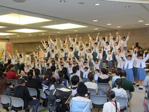 イベント開催に先立ち、午前11時に河上会長の挨拶の後、ステージイベントが始まり、津久見樫の実少年少女合唱団、エコ・マザー人形劇を楽しみました。